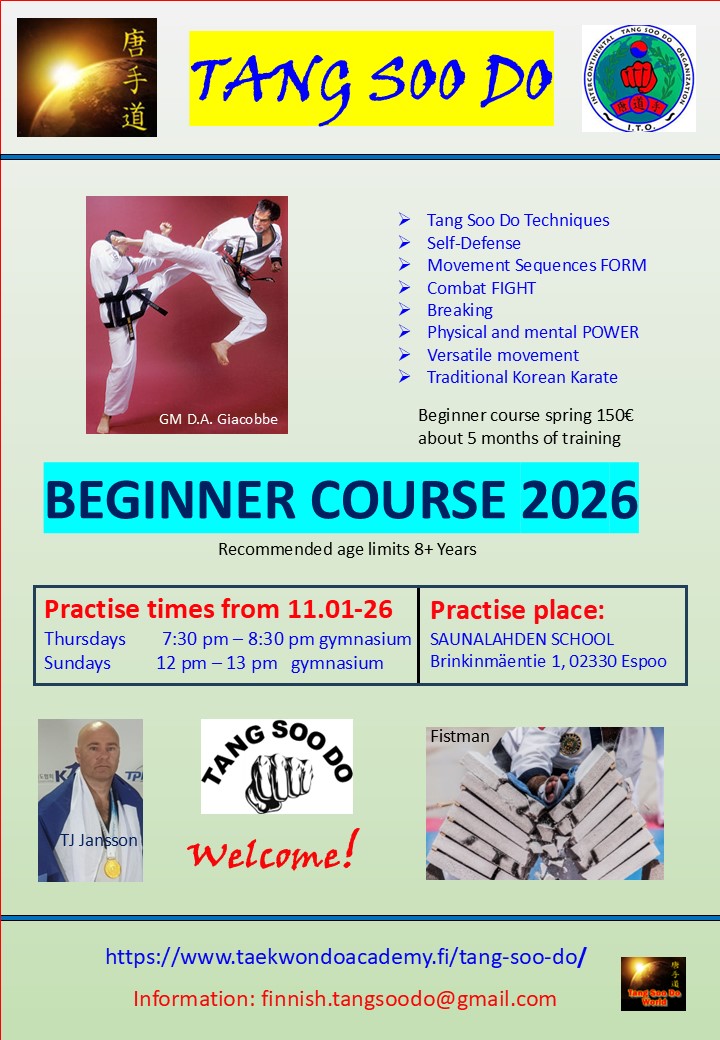 Suomen Tang Soo Do liitto. Virallinen nimi on Finnish Tang Soo Do Federation ry, joka on Tang Soo Do lajin kattojärjestö Suomessa. Liittomme tehtävänä on toimia Suomessa rekisteröityjen Tang Soo Do lajia edistävien yhdistysten aatteellisena järjestönä.